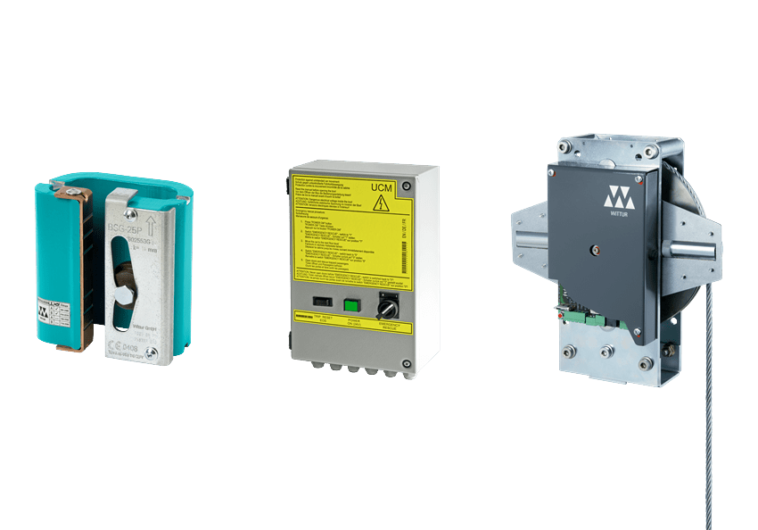 - Innovative bidirectional progressive safety gear BSG with great distance between guide rail and safety gear.