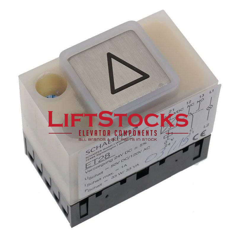 ET28, Plate V2A K180, lamp BA7s, 24V, 1.2W, sign engr. arrow up 45x28mm