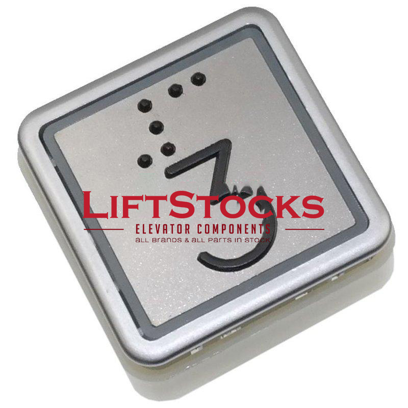 Pusch button AT33, chrome, tactile with braille, 3 35x35mm