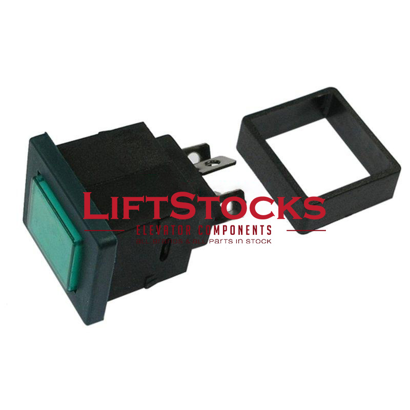 Push button green + lamp 41x30mm